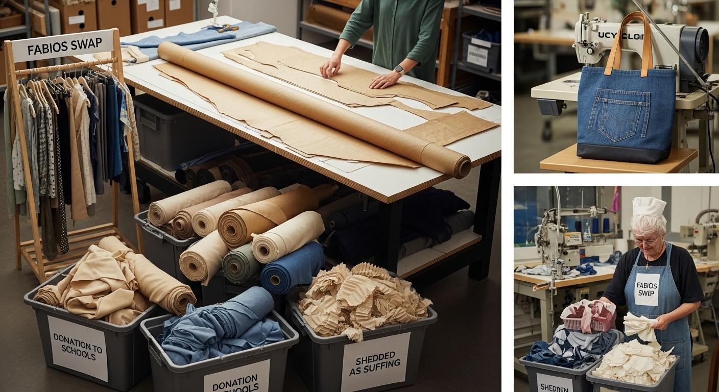 Ткани, которые остаются после раскроя, можно переработать и использовать для создания других изделий, таких как сумки или аксессуары. Также можно переработать ткани, такие как полиэстер, и использовать их снова.