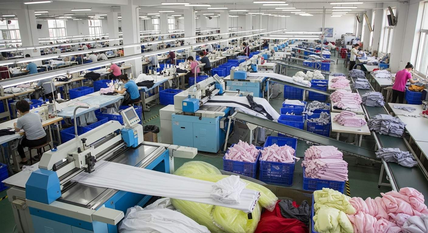 Современные фабрики используют автоматизацию и контроль качества для повышения эффективности и точности массового пошива.
