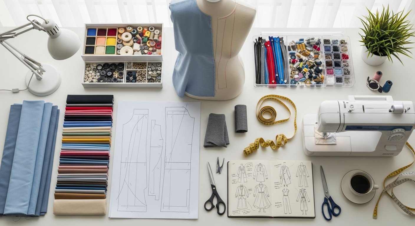 - Пошив и отделка — на данном этапе происходит непосредственно изготовление изделия, пошив по лекалам, работа с тканью, а также добавление фурнитуры и отделки.